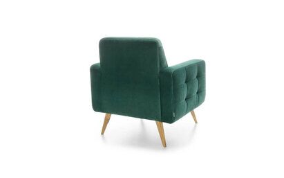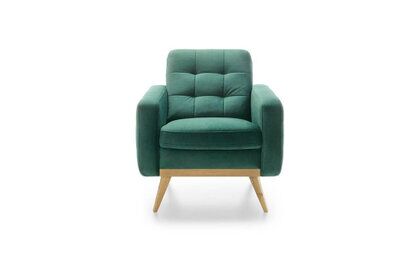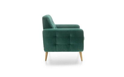 Fotel Nova to propozycja dla osób, które lubią połączenie stylu skandynawskiego z klasyką. Ubrany w welwetową tkaninę w kolorze butelkowej zieleni, fotel ten będzie prawdziwą ozdobą każdego salonu. Wyróżniają go geometryczne pikowania na oparciu i bokach oraz drewniane nóżki i drewniana listwa ozdobna. Doskonale komponuje się z sofą Nova, z którą stworzy przytulny zestaw wypoczynkowy.