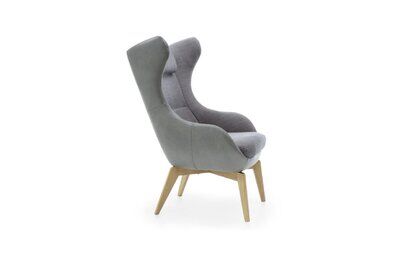 Nowoczesny fotel Zing II to kolejna propozycja w ramach linii MODERN. Ten fotel uszak charakteryzuje się bardzo modnym kształtem – hitem są bowiem przytulne uszy oraz drewniane nóżki, dzięki którym przybiera nieco nietypowy kształt. Wygląda bowiem trochę jak fotel krzesło. To sprawia, że mebel ten sprawdzi się doskonale zarówno w salonie, jak też w domowym gabinecie, sypialni a nawet holu.