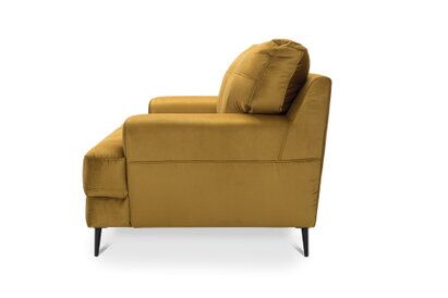 Sofa Monday jest rozwiązaniem dla osób które lubią popołudniowe leniuchowanie, albo dobry filmowy wieczór. Lekko zagięta do wewnątrz linia podłokietników sprawia że pomimo obfitych kształtów, sofa nie jest zbyt obszerna i mieści się nawet w niewielkich pomieszczeniach. A faliste zawieszenie i piankowa wyściółka zapewniają wysoki komfort siedzenia Zachwyt  komfortem siedzenia i wzornictwem, uzupełniają smukłe stylizowane na szpileczki, wykonane z metalu w czarnej optyce nóżki mebla. Sofa jest propozycją dla bardzo wytrawnych znawców stylistyki i komfortu mebli wypoczynkowych.