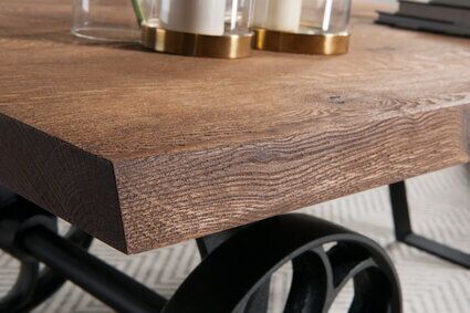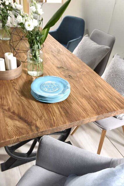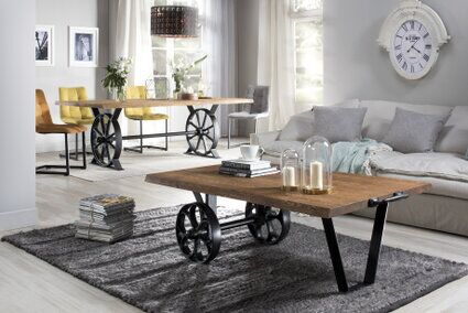 Prezentujemy salon urządzony w klimacie Loft kolekcja mebli Salvador tzw. "Biały Kruk". Stół Salvador w stylu loftowym do produkcji mebli wykorzystano przede wszystkim naturalne materiały takie jak stal, drewno czy beton, a także szkło. Meble wykonujemy również na indywidualne zamówienie według sugestii klienta. Meble wykonane z litego drewna dębowego olejowanego w połączeniu z metalem. Podstawa malowana proszkowo na czarno. Możemy zaproponować Państwu wybarwienie nogi w dowolnym kolorze z palety RAL.