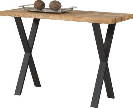 Konsola Simple zaprojektowana zgodnie z najnowszymi trendami oraz oczekiwaniami klientów. Oferujemy Państwu konsolkę w rozmiarze 110 cm x 42 cm. Istnieje możliwość zamówienia w innym wymiarze na indywidualne zamówienie! Blat o grubości 4 cm konsolki został wykonany z najwyższej jakości drewna dębowego olejowanego w kolorze naturalnym. Podstawę konsolki stanowią dwie metalowe nogi w kształcie litery X pomalowane proszkowo na czarny półmat, co nadaje mu industrialny charakter. Nasz produkt idealnie współgra z surowością betonu, kamienia czy cegły. Możemy zaproponować Państwu wybarwienie nogi w dowolnym kolorze z palety RAL. Możemy dostosować rozmiar konsoli do Państwa wnętrza.